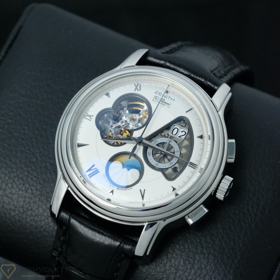 Какой часовой бренд ассоциируется у вас с высоким качеством, инновациями и непревзойденным стилем? Безусловно, это Zenith, и именно его шедевр, Chronomaster Open GDE Date Moonphase, мы предлагаем вашему вниманию в нашем часовом салоне «Мануфактура».