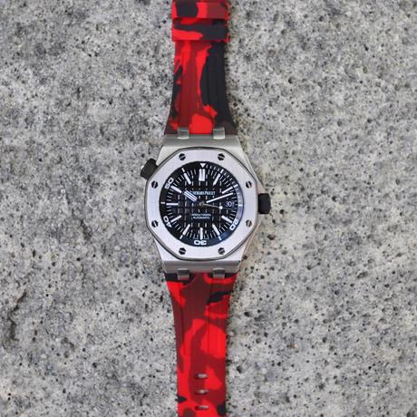 В мире часов и ювелирных изделий есть бренды, которые символизируют не просто качество, а настоящий шедевр. Одним из таких брендов является Audemars Piguet, известный своими уникальными и изысканными часами. Именно от этого бренда мы предлагаем вам эксклюзивный ремешок для часов RED CAMO AP DIVER 42MM STRAP.
